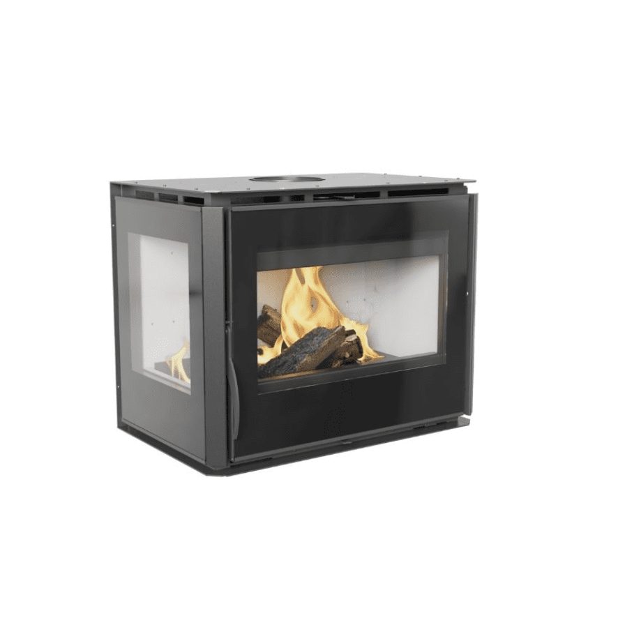 Insert à bois IDL 70, 2 faces vitrées, vision d’angle, possède une porte à ouverture latérale pour une large vision du feu. Insert facilement intégrable dans une cheminée existante, pour une rénovation. Vous pourrez aussi l’installer dans une construction neuve. Système d’air pulsé en option.